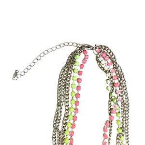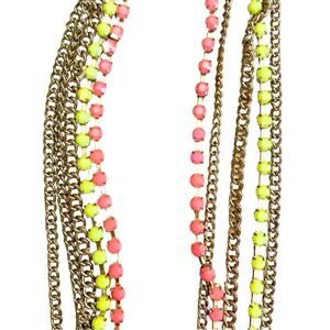 Gold tone 5 layered necklace with neon yellow and pink beads. Adjustable length. Lightweight. Add a pop of color to your look with this statement necklace. New without tags.