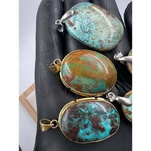 5 Natural Persian Turquoise Pendants Metal Stainless Steel Hook Bulk Lot