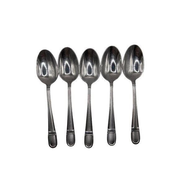 5 Oneida Colonnade stainless steel Soup spoons glossy with frosted handle 7 1/8”