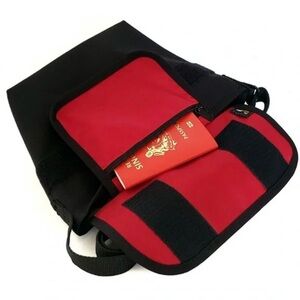 Stylish and durable, the black messenger bag is perfect for everyday use. Featuring a sleek design with a bold red logo patch, this bag combines functionality with urban style.