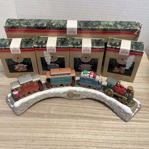 5 PC IN BOXES HALLMARK ORNAMENT TRAIN SET CLAUS & CO R.R. 1991 w Train Trestle