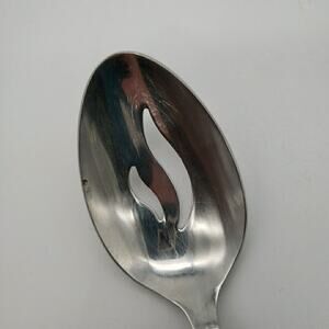 Good, pre-owned condition. There is some normal wear to the flatware, which includes shallow scratching. One pierced spoon has a mark on it shown on a photo. See photos.