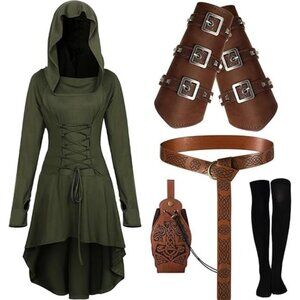 5 PCS Halloween Renaissance Costume for Women - Medieval Hooded Robe