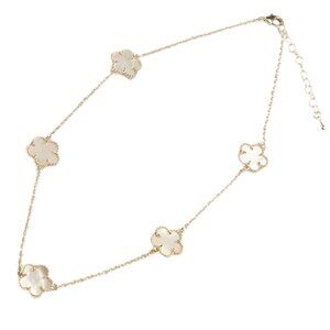 5 PEARL/NAVY CLOVER 2 SIDED GOLD NECKLACE, EXCELLENT QUALITY!!