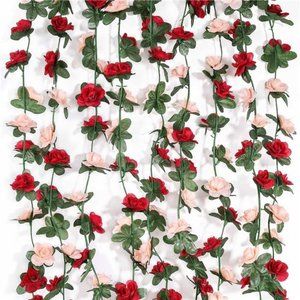5 Pack 47 FT Fake Rose Vine Flowers Plants Artificial Flower Hanging Rose Ivy