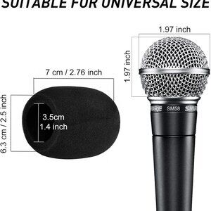 Microphone cover set: 5 pieces foam mic cover, 2.9 x 2.5 inches, caliber size is 1.4 inches, suitable for most standard handheld microphone, not for headset mic