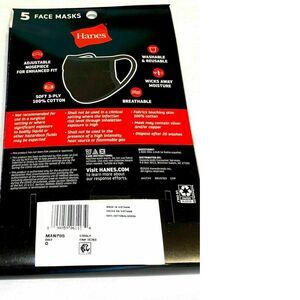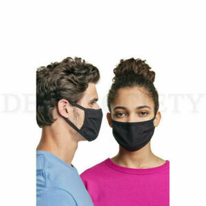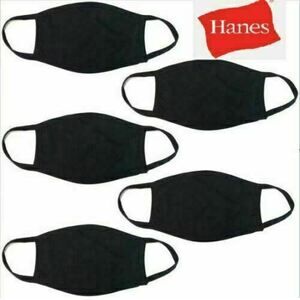 5 Pack Hanes Face Masks - Black Cotton Reusable Cover Face mask Cloth Facemask