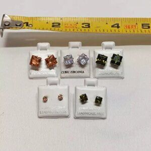 5 pairs of cubic zirconia studs in various colors and sizes. Brand new