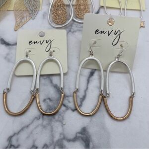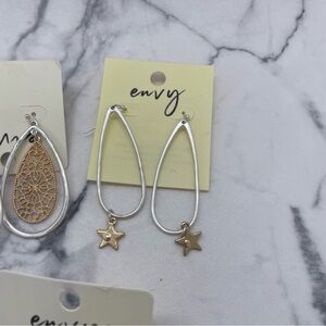 5 pairs of new Envy earrings in gold tone and silver tone! Great as gifts, or to keep for yourself. Some of the paper may be sticky from stickers that were removed.