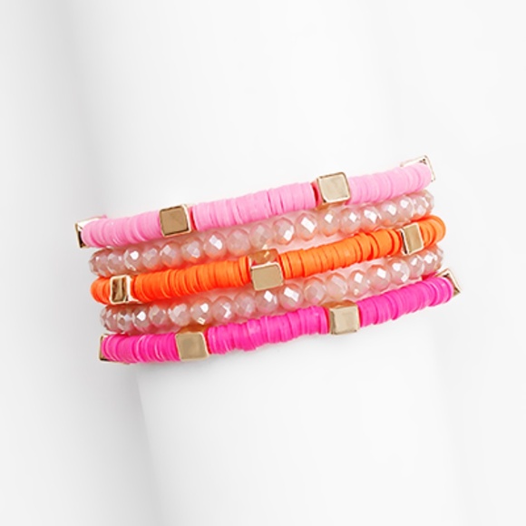 5 Pc Bead &Metal Square Bracelet Set