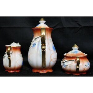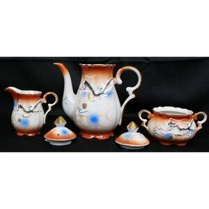 5 Pc Orange Moriage Dragonware Tea Set Teapot Sugar Bowl Creamer Pitcher Japan