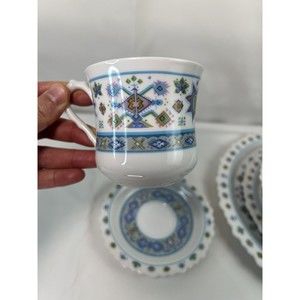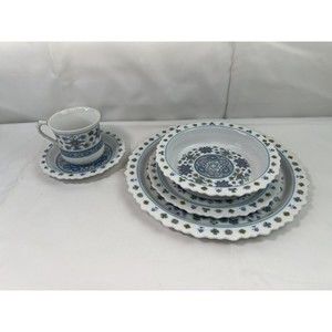 5 Pcs Dinnerware Set Of Sango Japan One World Lapland Blue 8006 EUC Sets served 1, includes Cup, saucer , 7bowl, 7 7/8 salad plates, 10 3/4 dinner plates.