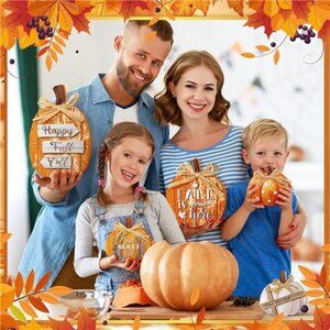 5 Pcs Fall Thanksgiving Decorations for Home Fall Wooden Pumpkin Tabletop Signs