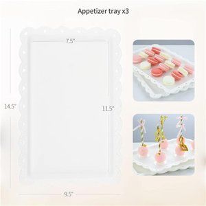 🧿Pack of 3 14.5X9.5’’ Rectangular appetizer plates. Made with high quality and thick plastic, fit for different food: fruits, cupcakes, buffet, grills, barbecue etc.