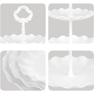 🧿Pack of 2 cupcake stands with extra large plates & extra high struts, each can hold 12~18 standard size cupcakes, and enough height for your beautiful cake icing, with bottom tier plate diameter of each: 10.9’’, middle tier plate diameter of each: 8.8’’, top tier plate diameter of each:7.1’