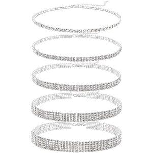 *This is 5 separate rhinestone choker necklaces of different sizes (1 row ~ 5 rows) ,small to large,you can wear it different every day.