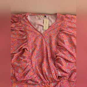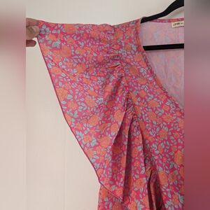 🎀$5 Pink Flutter Sleeve Blouse with Ruffled Tie Front