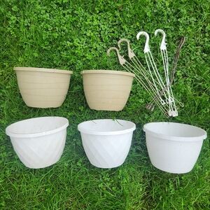 5 Plastic Hanging Flower Pots