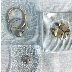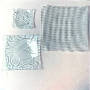 5 Plates: Handcrafted Vintage Decorative Textured Glass Serving Display Curved