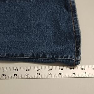 Pre-owned good condition, these look like they were professionally shortened. Typical wash & wear fading. No holes or stains.