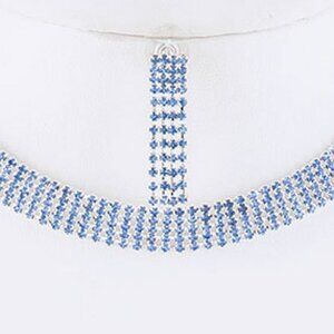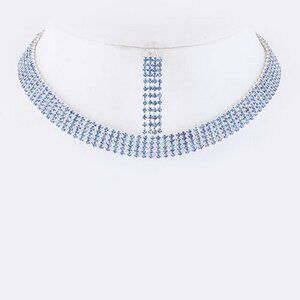 5 Row Color Crystal Rhinestone Choker Set - Baby Blue
