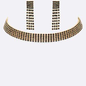5 Row Color Crystal Rhinestone Choker Set - Black