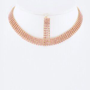 5 Row Color Crystal Rhinestone Choker Set - Gold/Pink