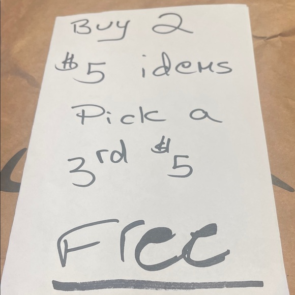 Put three five dollar items in a bundle and I’ll give you five dollars off. Buy two get one free five dollar items. ANYTHING