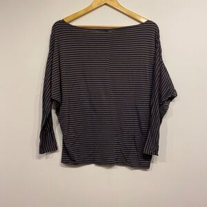 Striped blouse. The brand and size tag are missing but it fits like a small. Tighter arms and then a looser fit for the rest of it.