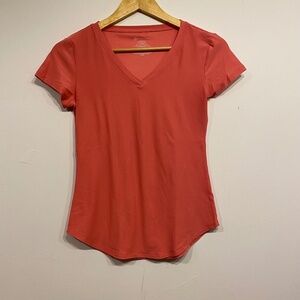 Pink v-neck short sleeve t-shirt. Perfect for running. Size xs. In great condition.