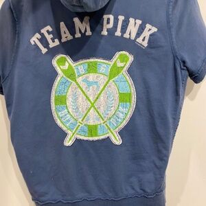 **$5 SALE** Victoria's Secret Blue Full Zip Short Sleeve Hooded Sweatshirt
