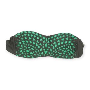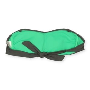 In gray with a bright green pattern, fully lined with a tie back. 82% nylon, 18% Spandex