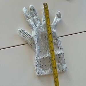sparkly, sequined, silver, iconic, statement, theatrical, glove, single-hand, right-hand, costume, tribute, pop star, 80s-inspired, performance, novelty, flashy, showy, MJ-style, glittery, dress-up, retro, stage-ready, eye-catching, one-size