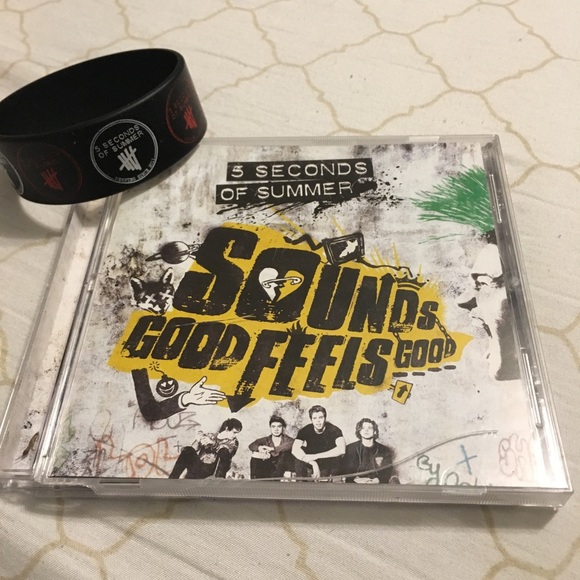 Comes with the "Sounds Good Feels Good" soundtrack (no scratches or skipping; but case is a little broken) and the band bracelet