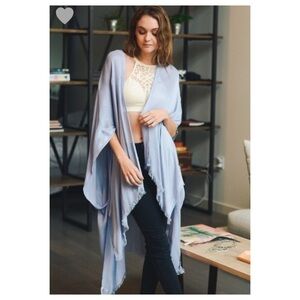 5 STAR SELLER Soft Frayed Trim Kimono Periwinkle