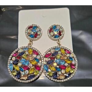 Elegant drop earrings featuring a vibrant mix of colorful gemstones.