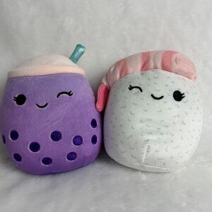 5" Squishmallows Lot of 2: Purple Boba Milk Tea Drink, Sushi Rice Shrimp Plush