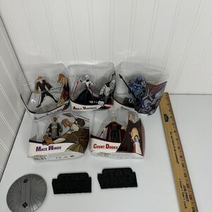 * Pre-owned. Has partial packaging for each which shows signs of wear. There are 4 Total Black Star Wars stands, there is one gray round piece, not sure if it is a stand or something else. I believe each figure has all accessories, but please view all pictures to ensure