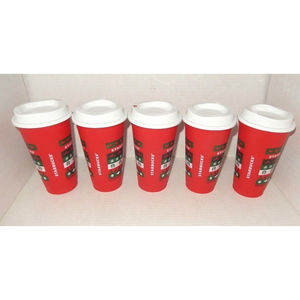 5 Starbucks Christmas Holiday Merry Coffee Reusable Hot Cups & Lids 2013 Red 16 oz