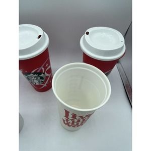 3 Starbucks Christmas Holiday Red 16 Oz. Recycled Travel Cups Mugs w/ 3 Lids