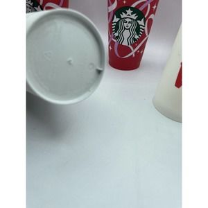 5 Starbucks Christmas Holiday Red White16 Oz. Recycled Travel Cups Mugs w 3 Lids