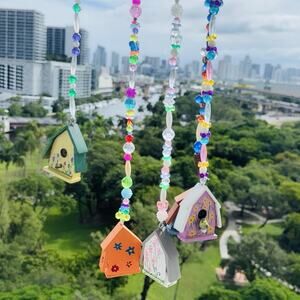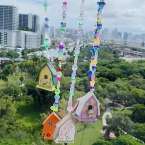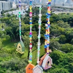 5 Strand Handmade Beaded String Bird House Mobile Toran Wall Hangings 1990s Art