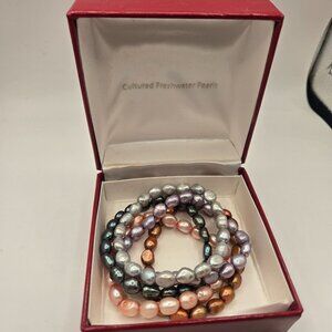5 Strand Multi Color Freshwater Cultured Pearl Stretch Bracelets