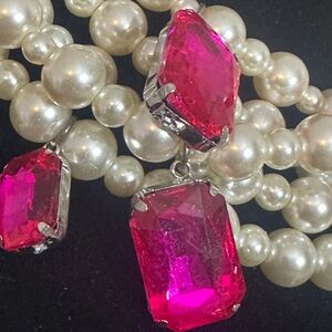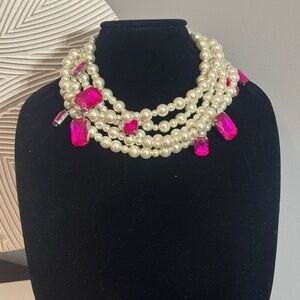 5 Strand Pearl Crystal Necklace: Fuchsia