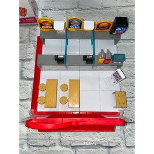 Store and display your favorite Foodie Mini Brands in this super realistic food court! The ZURU Foodie Mini Brands food court is the perfect place to store display and play with your collection! Fill the fast-food counter with your favorite minis, use the self-service kiosk and fill the seating area.