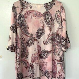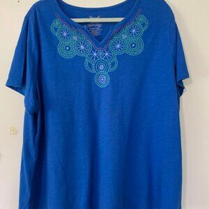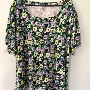 JMS Collection-Stylish short sleeves with a black, white and pinks design. Measures approx. length from shoulder to bottom is 30" & sleeves 9". M.K.M Designs-Size 3X. Measures approx. length from shoulder to bottom is 30" & sleeves 11.5". Rouge-Short sleeve olive green with bunched sides. Measures approx. length from shoulder to bottom is 30"-sleeves-6". Croft & Barrow-Short sleev black with purple, yellow and white flowers. Measures approx. length from shoulder to bottom is 27"-sleeves-10". Faded Glory-Short sleeve blue with decorative collar. Measures approx. length from shoulder to bottom is 28"-sleeves-9". All size 3X. Excellent condition. *Color may vary slightly from pictures. Please view all photos carefully for complete description.