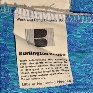 5 VTG Blue Teal Burlington House Curtain Drape Panels 56x37 In Pleated Top. These beautiful drapes are lined. They are in very good condition. There is a mark on the back of one of them. ( as seen in pic ) They are a green teal with a blue teal embossed floral design, These curtains have light signs of wear as they are from the 1980's.