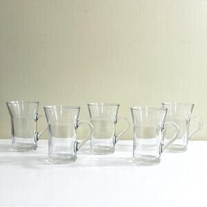 Set of 5 Vintage Bormioli Rocco Cappuccino Espresso Coffee Cups Mugs, Tempered Glass.