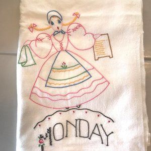 5 Vintage Embroidered Flour Sack Tea Dish Kitchen Towel Monday-Friday