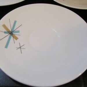 5 Vintage MCM Salem North Star Atomic Starburst Saucers Turquoise & Tan 1960s